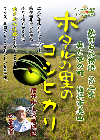 福井の奥座敷、美山地区の自然豊かなほたるの里で育った美味しいお米が、笑顔の輪を広げます。