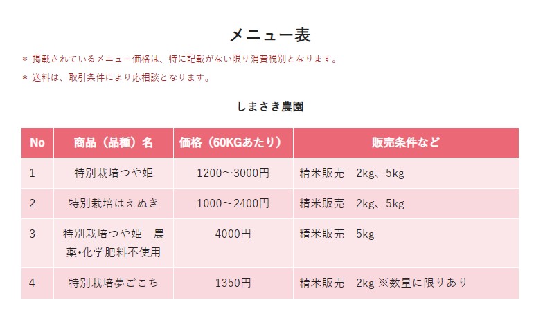 つや姫や雪若丸の他、希少品種も栽培しています。2kg〜5kgで精米発送しています。